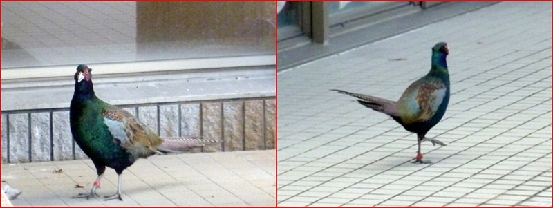 レイクウッド久山の地域交流センター近くで雉の雄2羽が歩いていました。